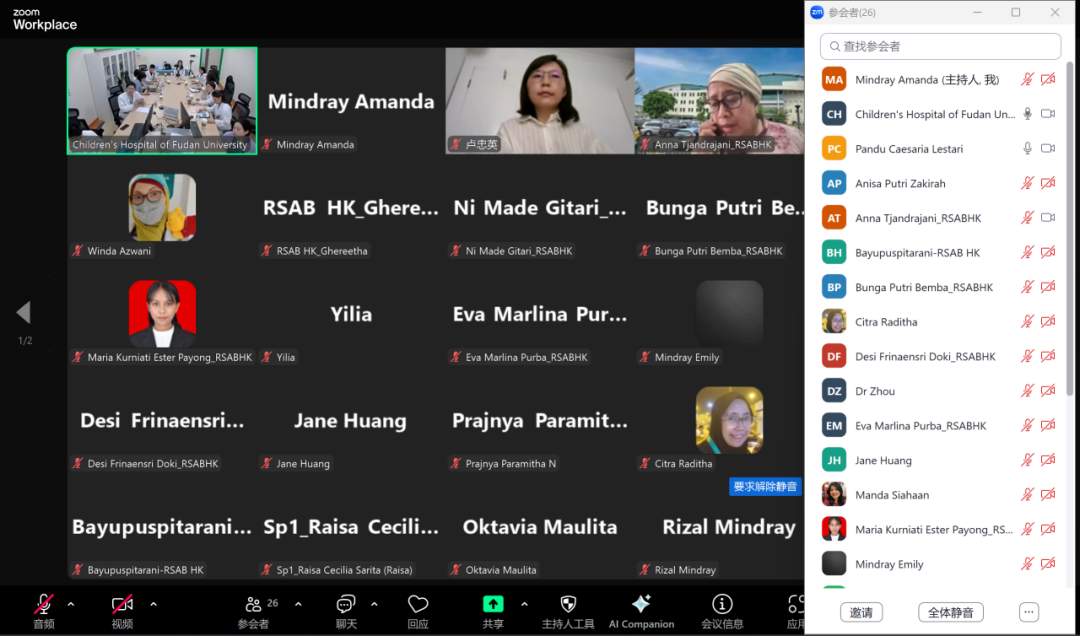 本次线上学术交流活动内容丰富,涵盖了多个儿科医学的热点话题。来自betway在线登录的神经科与临床营养科团队与印尼 RSAB Harapan Kita Hospital的同行们进行了深入的探讨和交流。